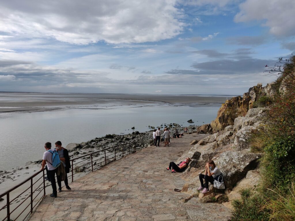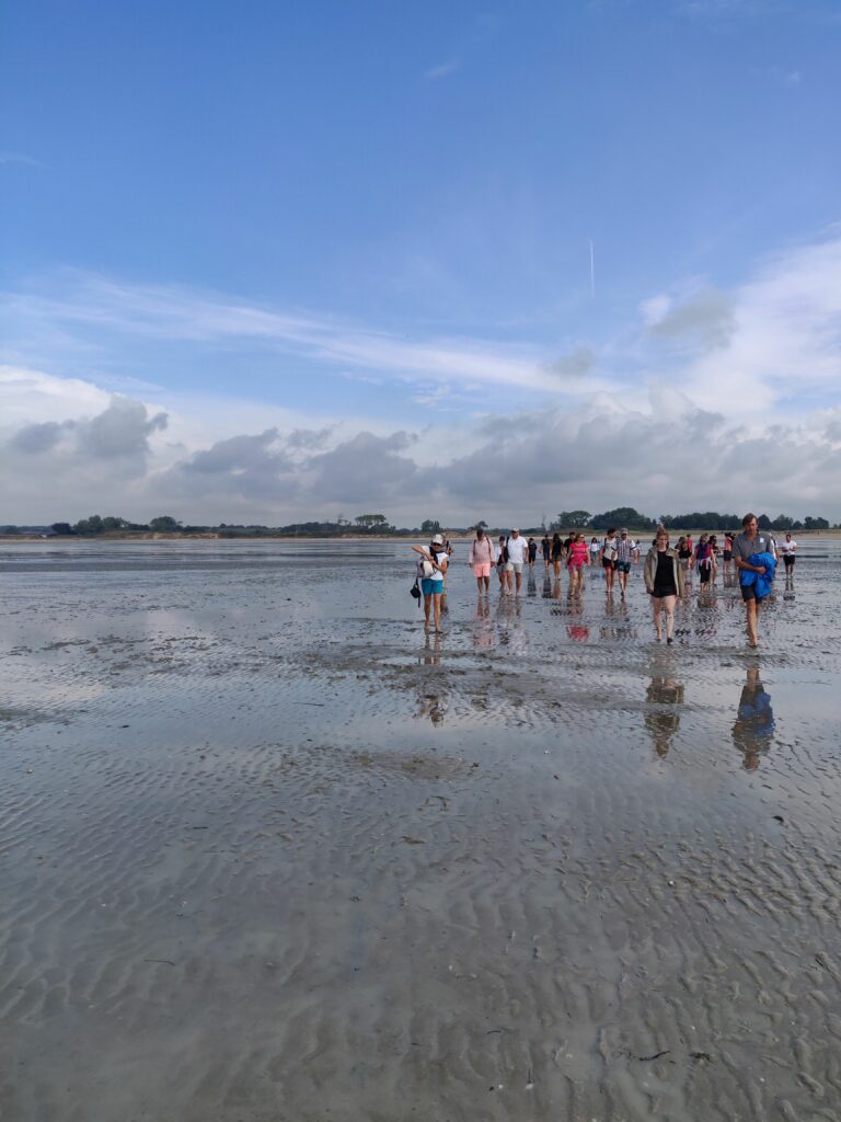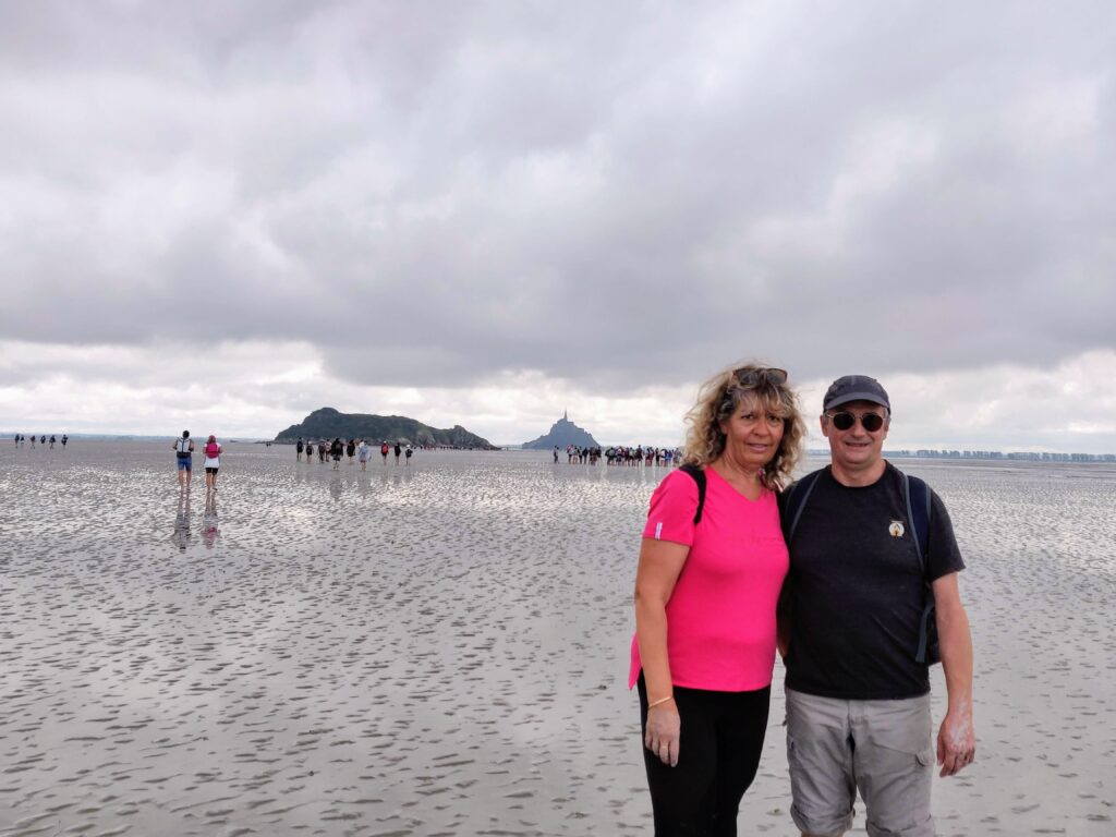 Nous avons fait la traversée de la baie du mont a pieds avec Yannick et Soizic , Le soleil était revenu, par endroit la traversée des ruisseaux n’ était pas si simple, mais la vue et après la visite en temps de covid, était des plus agréable, pas grand monde, les commerces et restaurants fermés, même la mère Poulard ….Triste pour certain , mais moi qui n’aie pas la foule j’ai apprécié