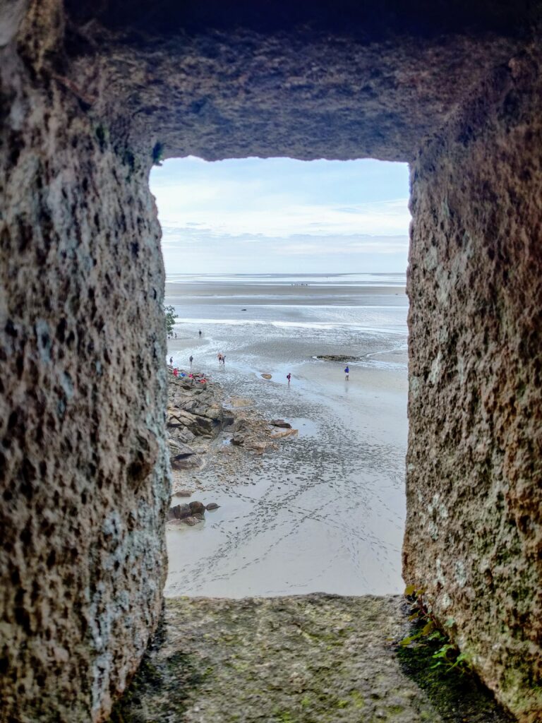 Le mascaret dans la baie, pour une fois la météo n’était pas terrible, mais on a vu un petit phoque.