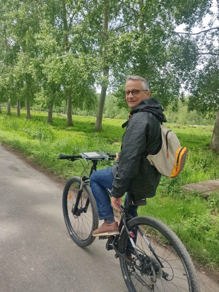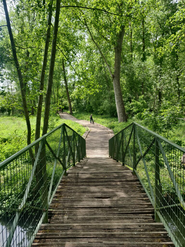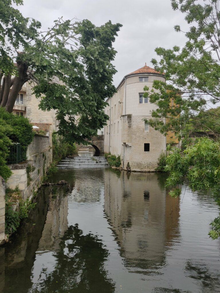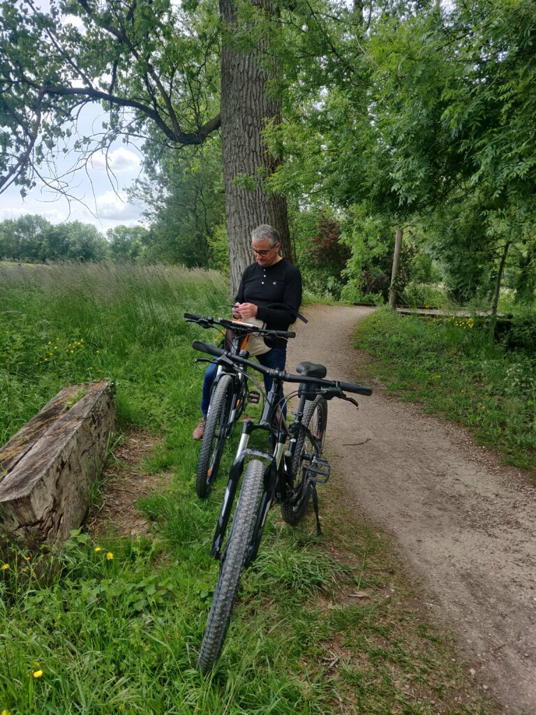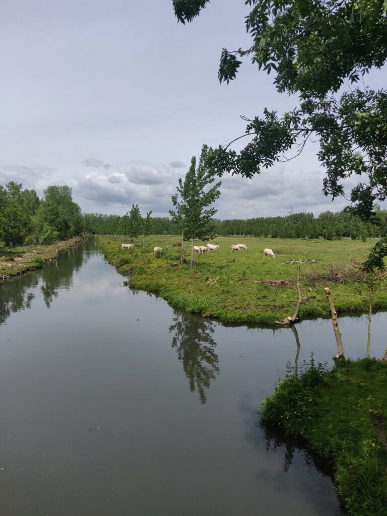 Le lendemain nous avons loué des vélos dans le village de Coulon, nous avons dormi sur le site de location velo barques c etait sympa et gratuit. La balade a vélo dans les marais 25 km avec les cicognes les moutons les vaches… C était bien, et fatiguant.